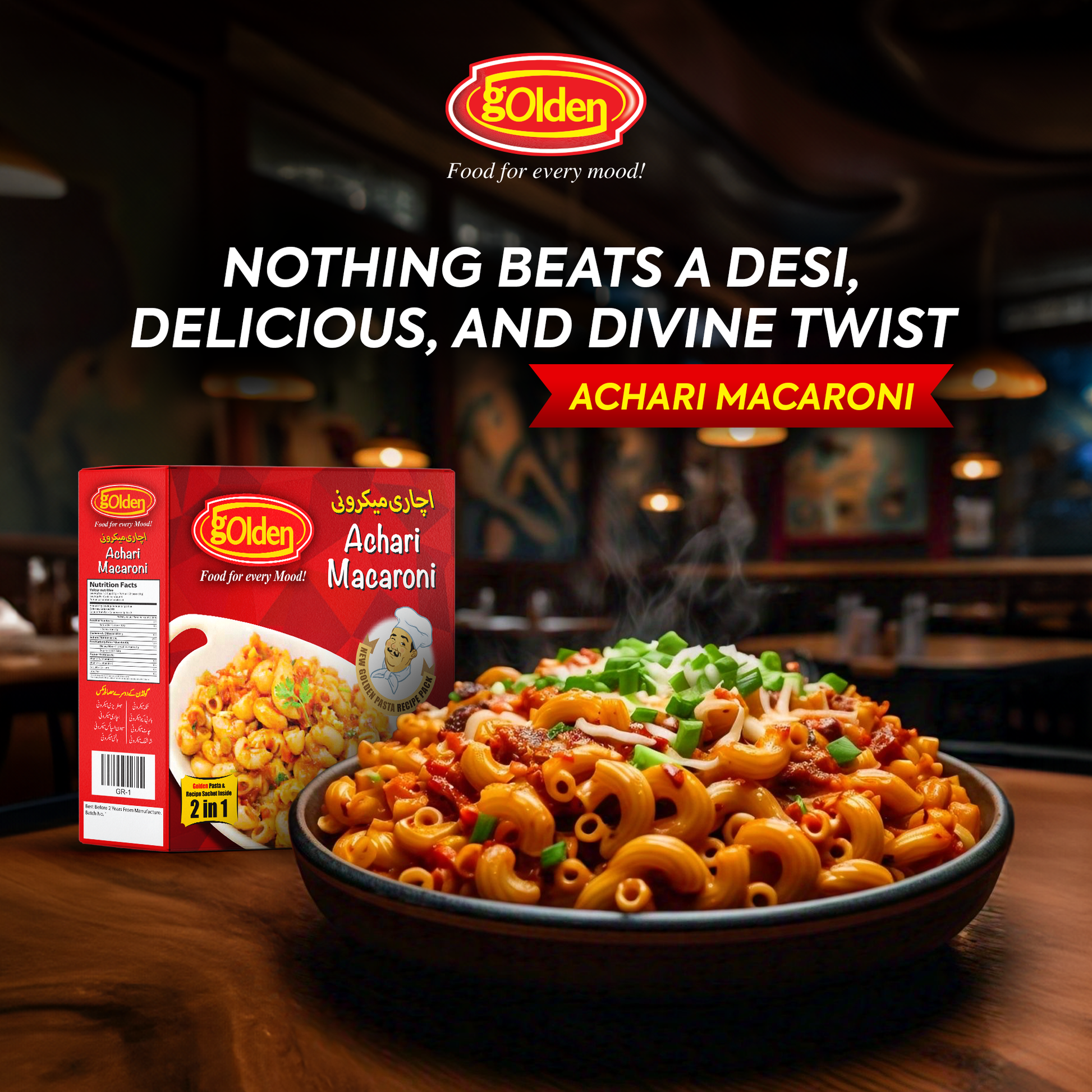 Enjoy a tangy twist with our Golden Achari Macaroni Pack! This unique macaroni is infused with the bold flavors of traditional achar (pickle) spices, providing a quick and delicious meal that brings the perfect balance of savory and sour in every bite. Whether you’re craving a quick lunch or a scrumptious dinner, our Achari Macaroni has got you covered.